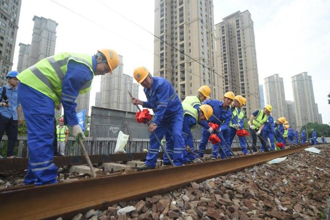 5月24日上午9時(shí),武九鐵路北環(huán)線三層樓鐵路立交橋鋼軌開(kāi)始進(jìn)行切割拆除。